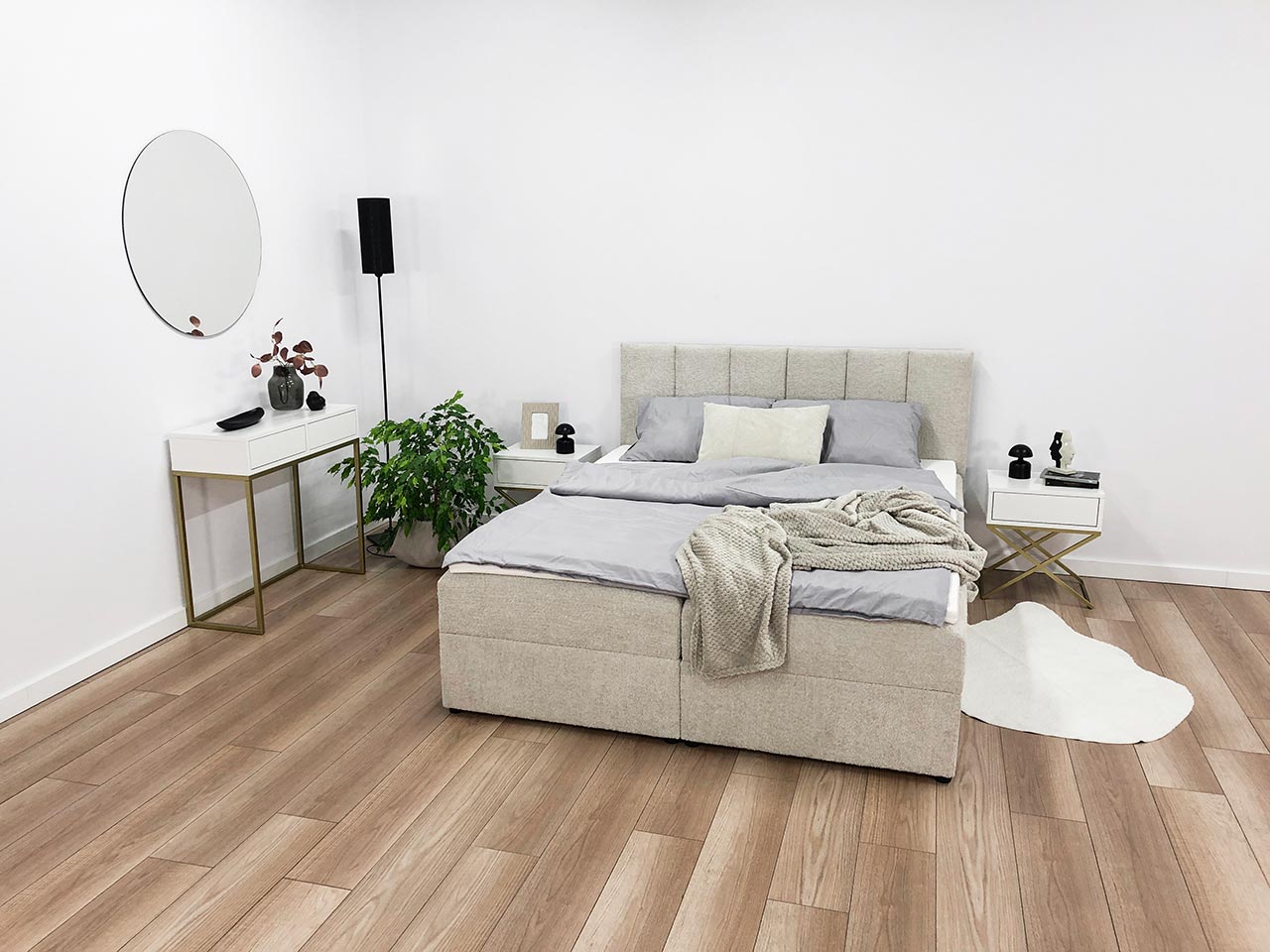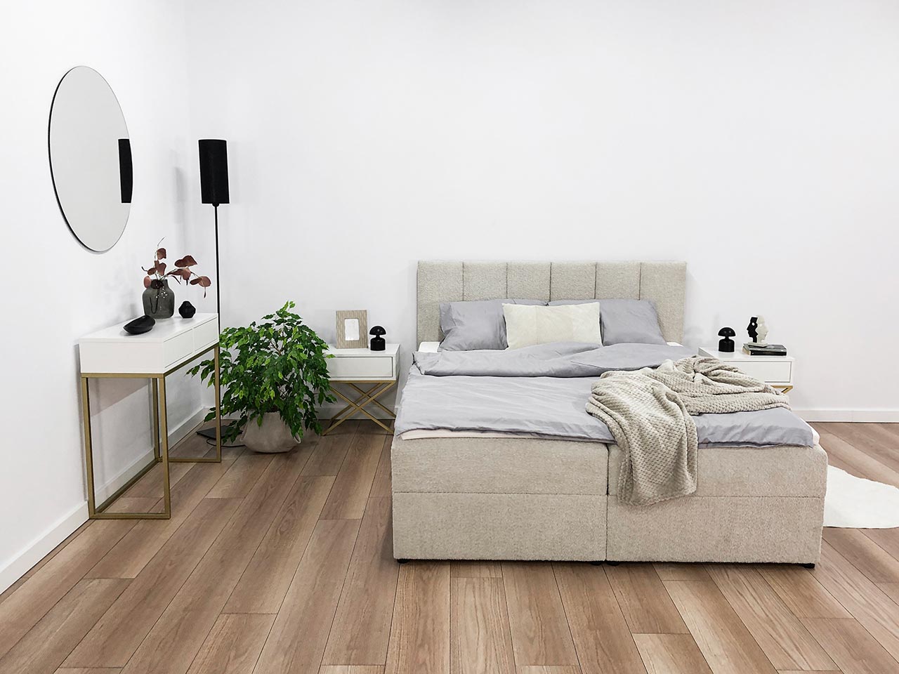 Łóżko kontynentalne ALTAIR to eleganckie i funkcjonalne rozwiązanie do nowoczesnych sypialni. Prosta, geometryczna bryła w połączeniu z wysokim, tapicerowanym zagłówkiem tworzy spójną i ponadczasową formę, która dobrze odnajduje się zarówno w aranżacjach prywatnych, jak i inwestycyjnych.