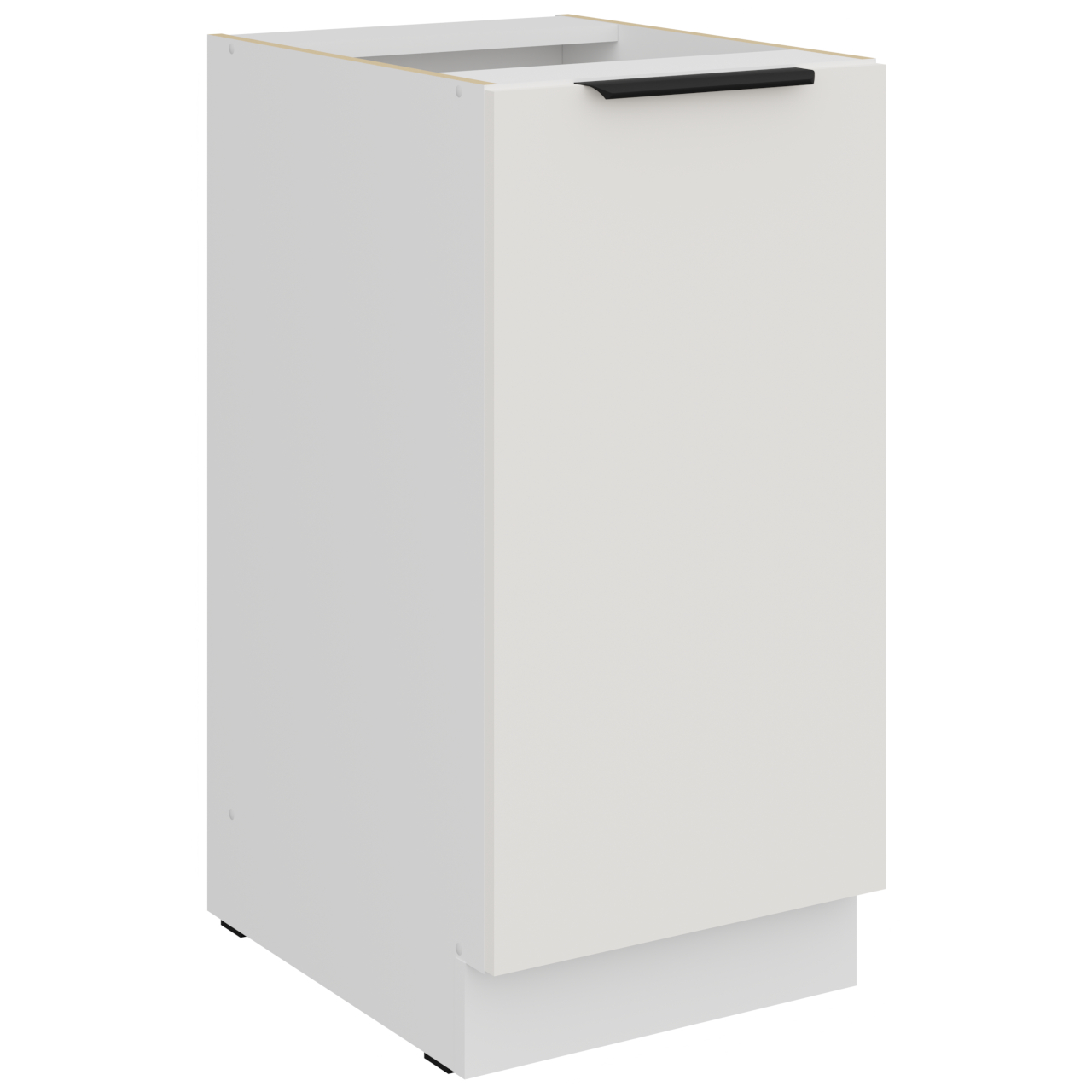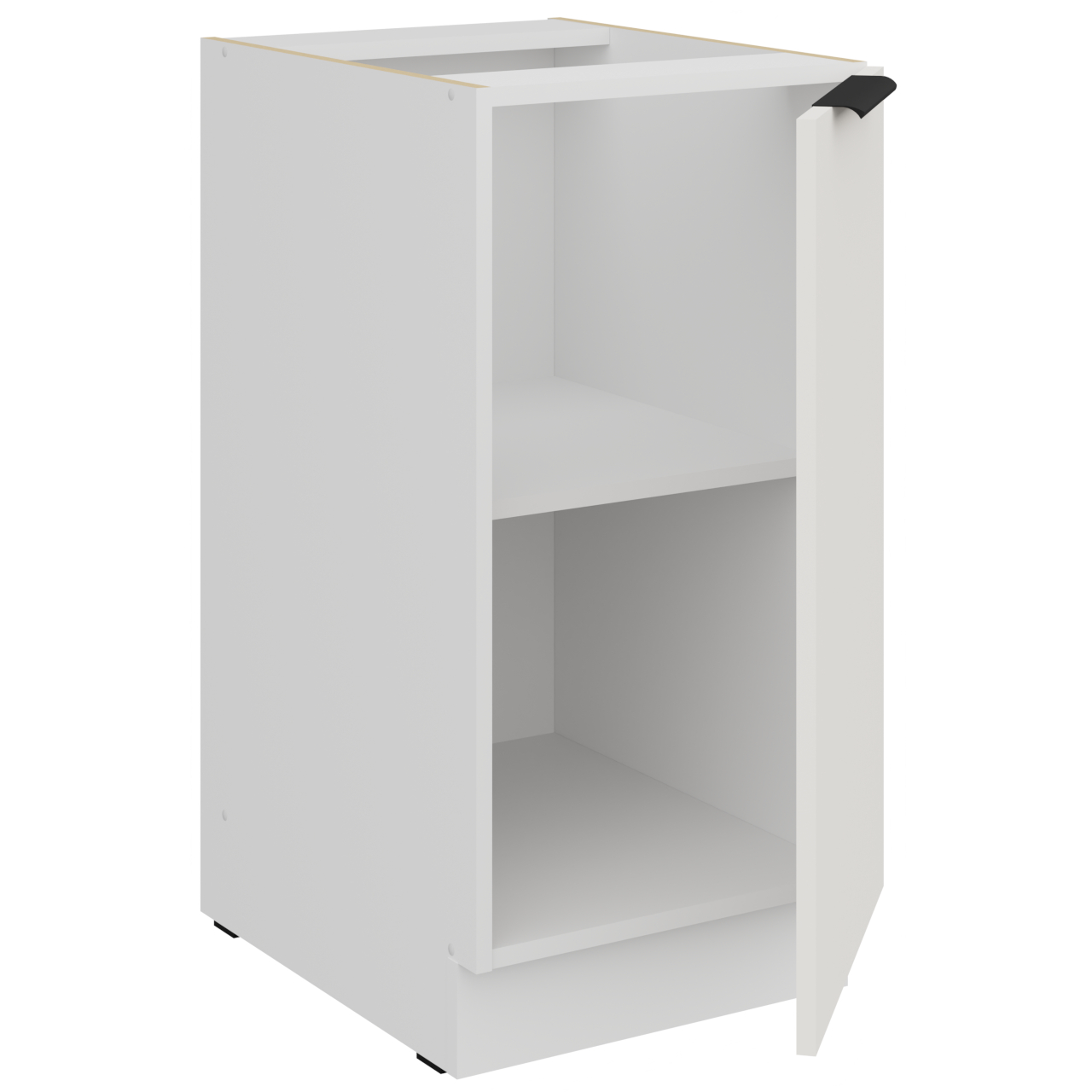 Wnętrze szafki w kolorze białym. Szafka ma jedną półkę. Otwory na uchwyt wiercone nieprzelotowo. |