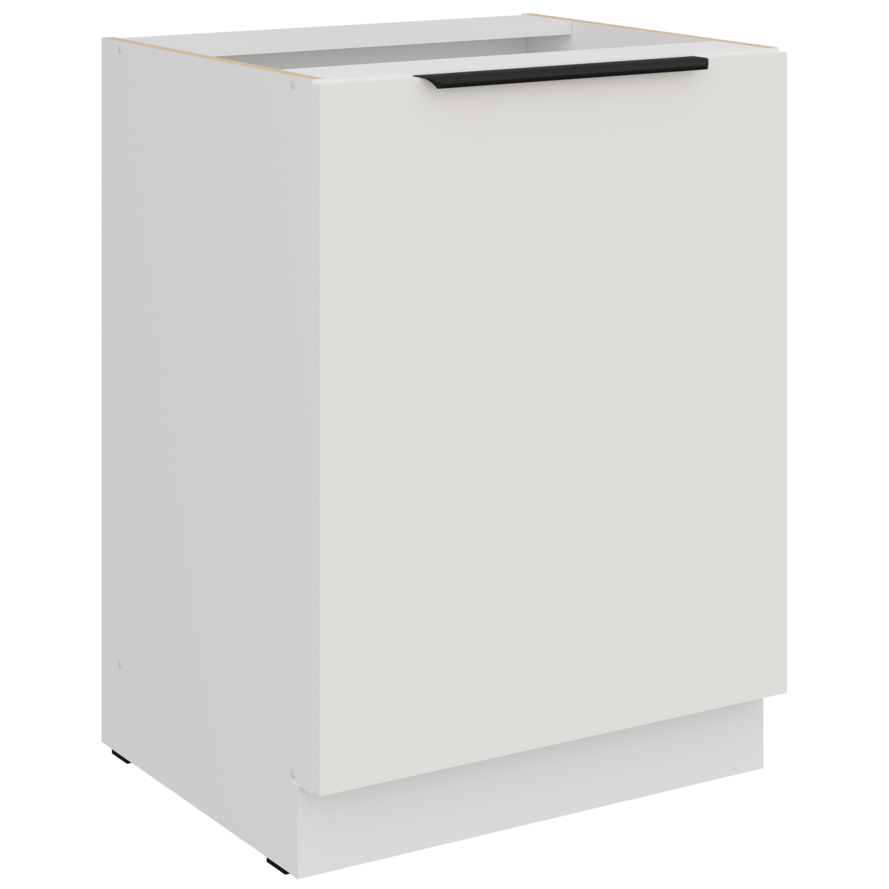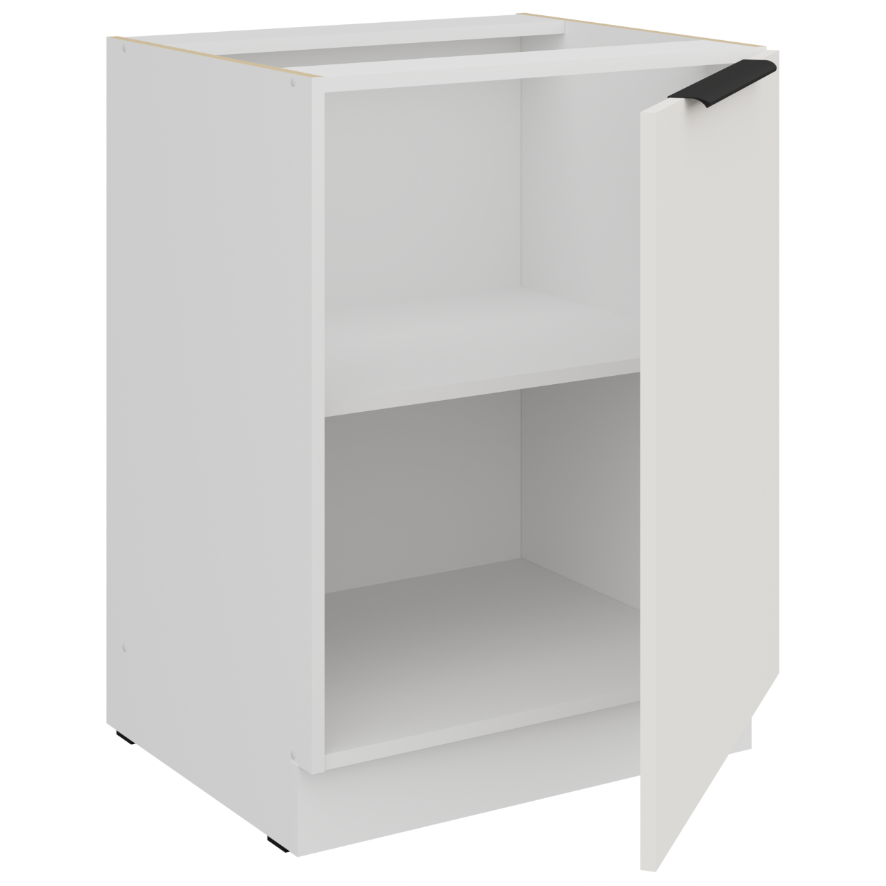 Wnętrze szafki w kolorze białym. Szafka posiada jeden front. Otwory na uchwyt wiercone nieprzelotowo. |