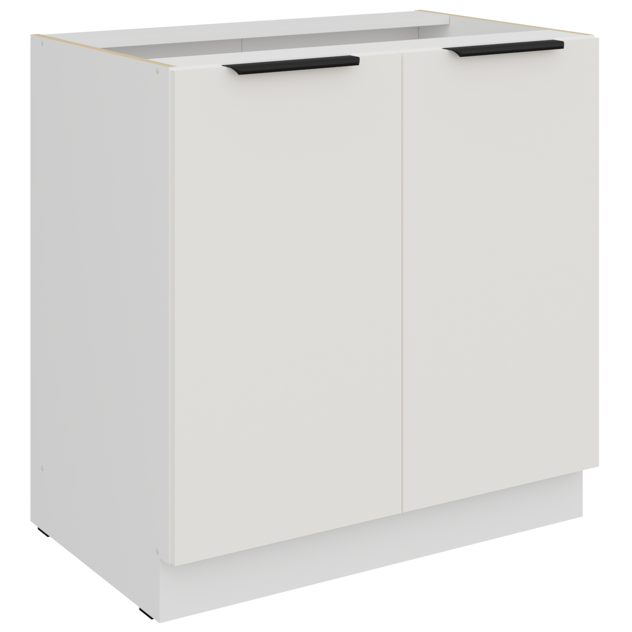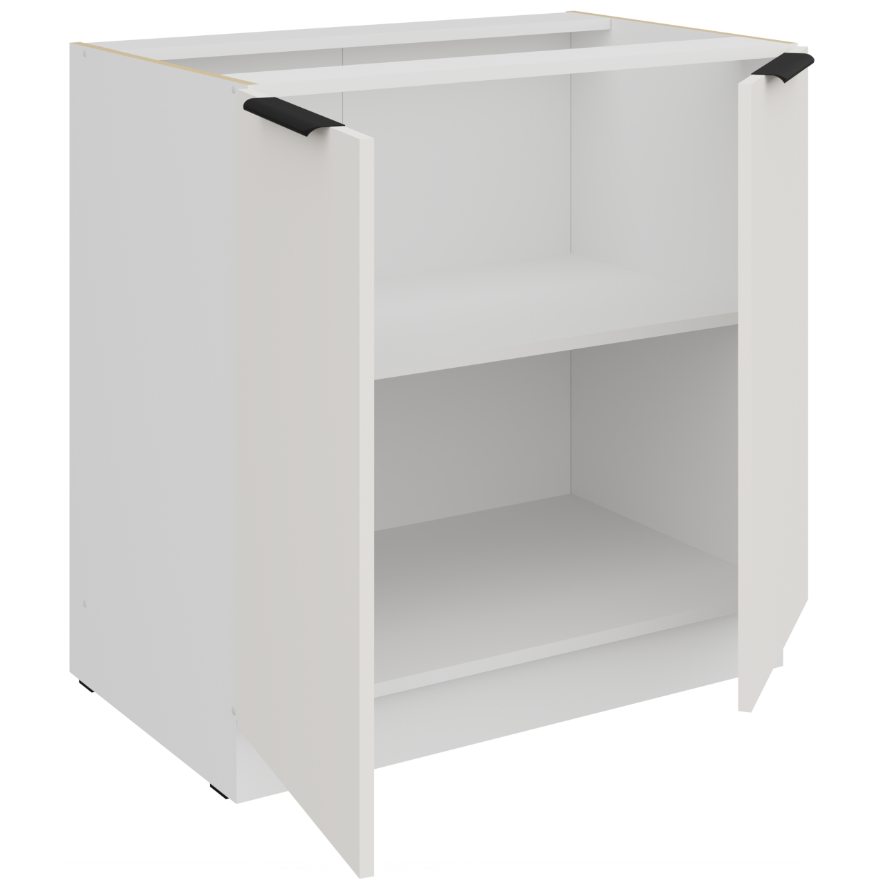 Wnętrze szafki w kolorze białym. Szafka ma jedną półkę. Otwory na uchwyt wiercone nieprzelotowo. |