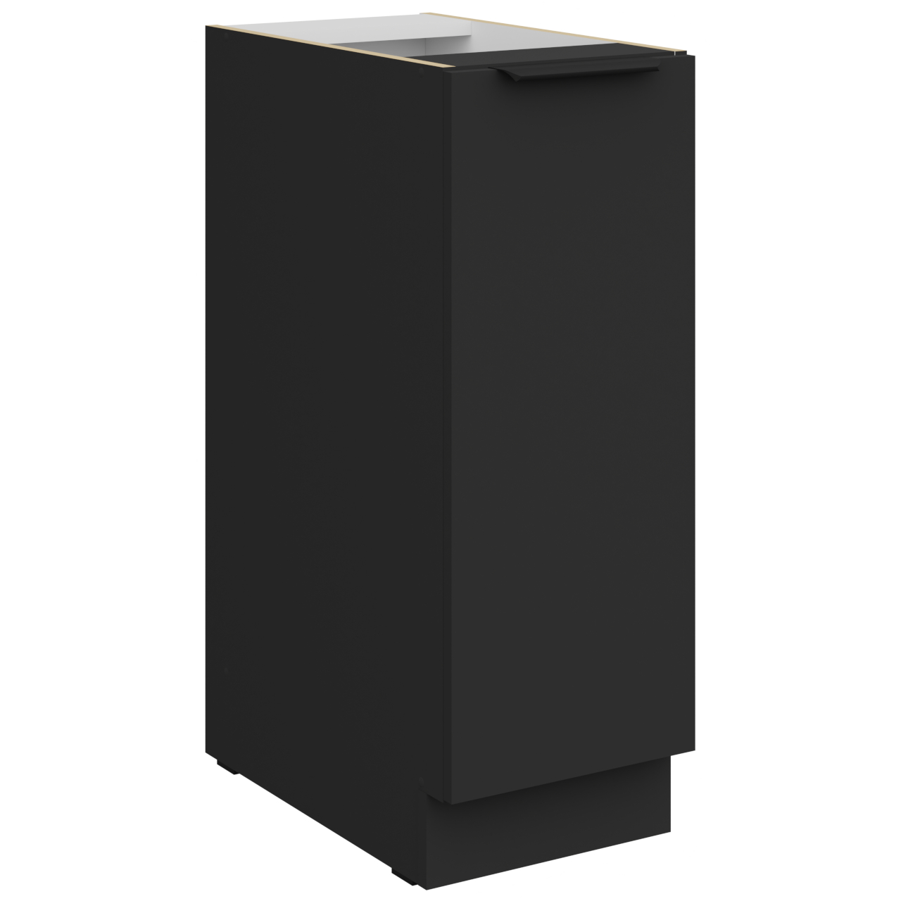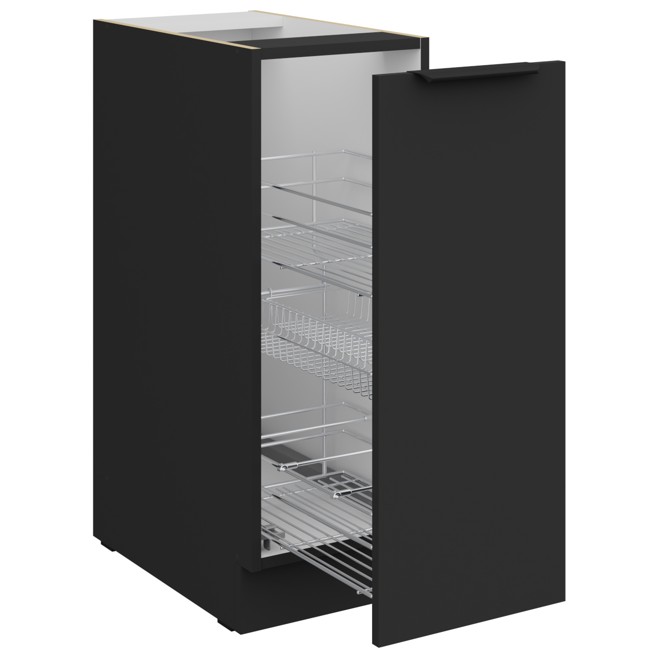 Wnętrze szafki w kolorze białym. Otwory na uchwyt wiercone nieprzelotowo. Kosz CARGO chromowany. Kosz CARGO montaż dolny. |