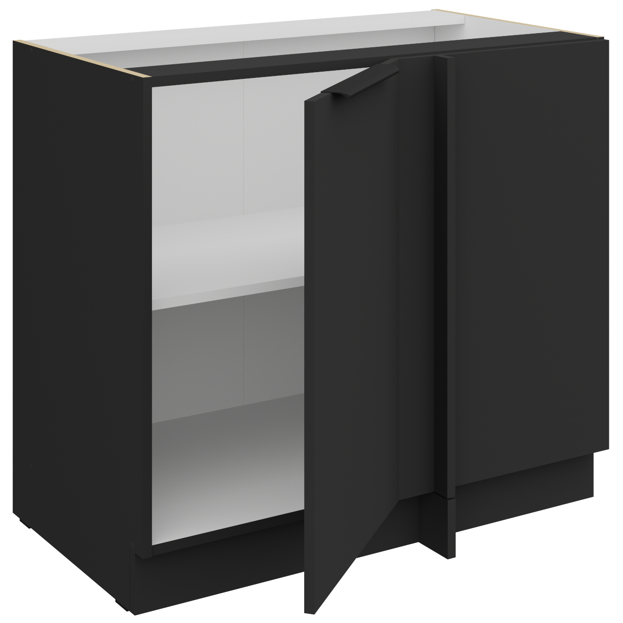 Wnętrze szafki w kolorze białym. Szafka ma jedną półkę. Otwory na uchwyt wiercone nieprzelotowo. |