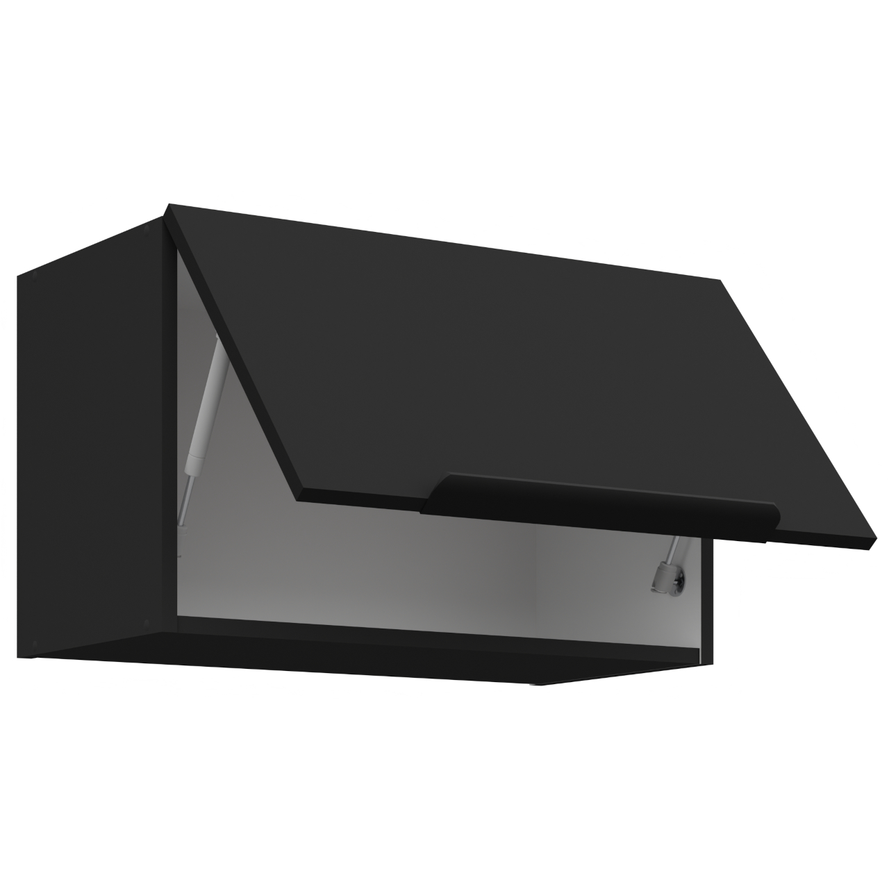 Wnętrze szafki w kolorze białym. Otwory na uchwyt wiercone nieprzelotowo. |